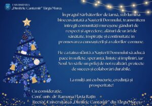 Fie ca taina sfântă a Nașterii Domnului să aducă pace în suflete, speranță, liniște și împliniri, iar Noul An să fie un prilej de noi realizări, proiecte de succes și colaborări durabile.